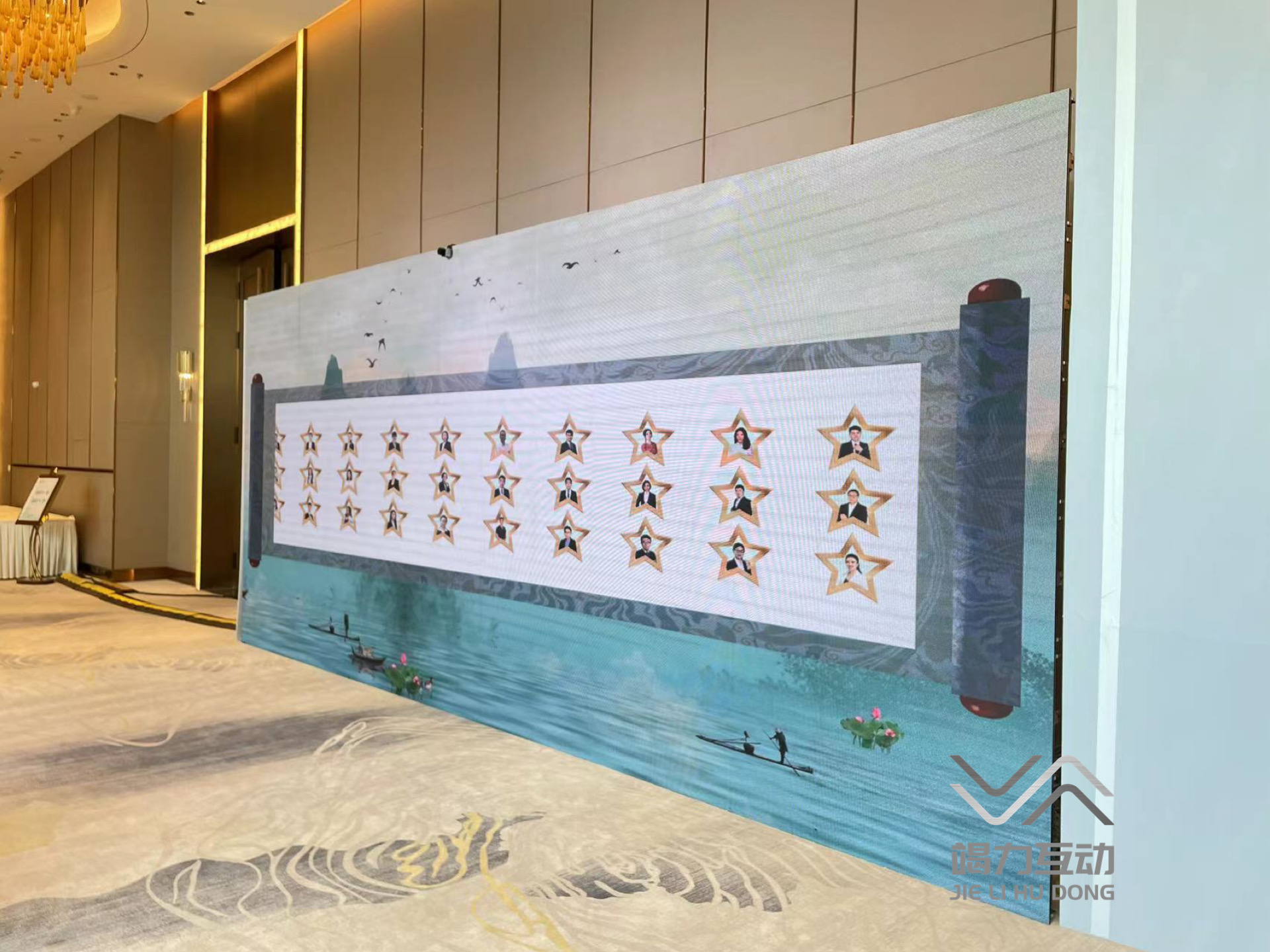 墙面的大小是完全自定义的,通常取决于您的活动人数以及活动的时间,最小的墙面推荐是2.5米*1.5米